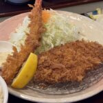 海老フライ(1尾)、カニコロッケ(1個)とハンバーグ定食
