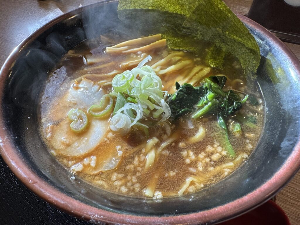 煮干しの香りが広がる煮干し醤油味のラーメン。